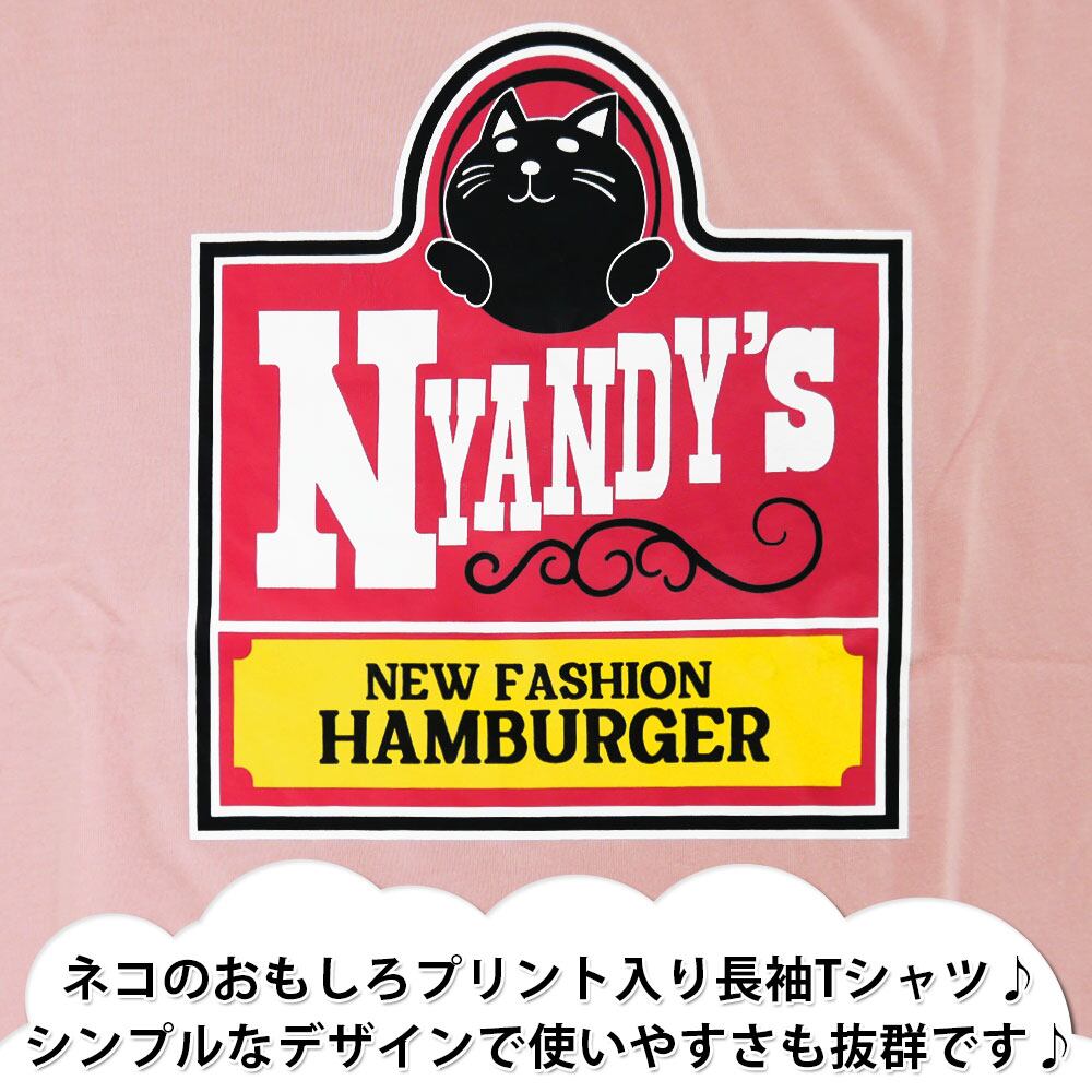 おもしろ Tシャツ メンズ 長袖 ネコ ハンバーガー パロディ 猫 グッズ 12539405C T-SHIRT