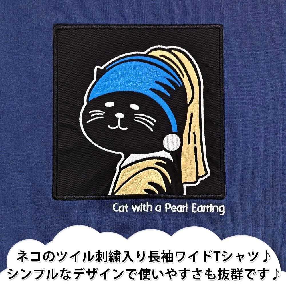 ネコのツイル刺繍入り長袖ワイドTシャツ