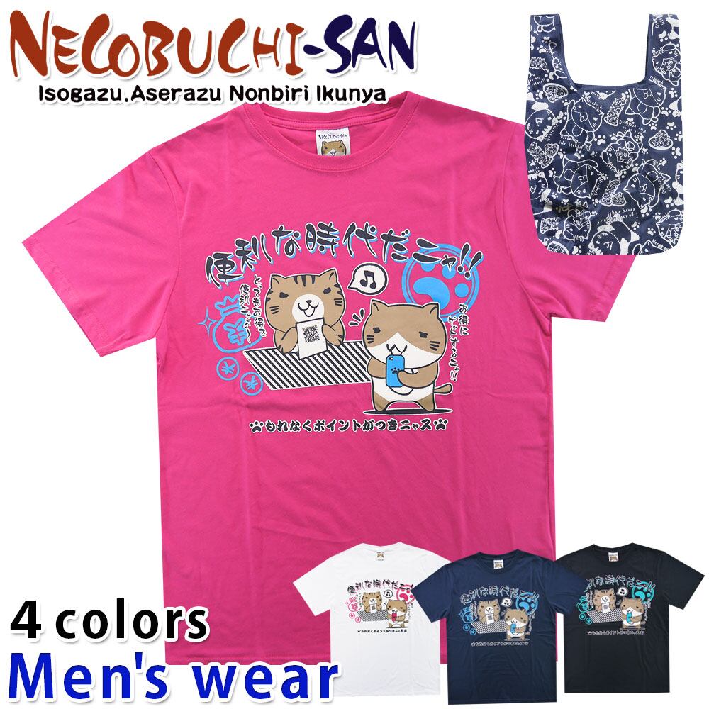 ねこぶちさん 半袖 プリント Tシャツ メンズ エコバッグ グッズ 猫 ネコ 12125008 T-SHIRT