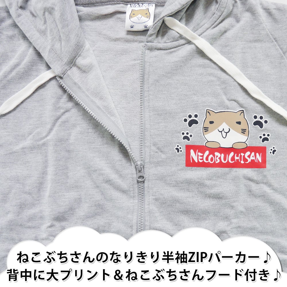 ねこぶちさん 猫耳付 なりきり 半袖 パーカー メンズ ZIP グッズ ネコ 12129563 HOODIE