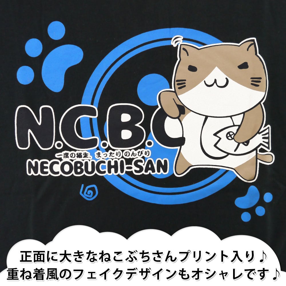 ねこぶちさん 長袖 プリント Tシャツ メンズ 重ね着風 フェイク 猫 グッズ 12135005 T-SHIRT