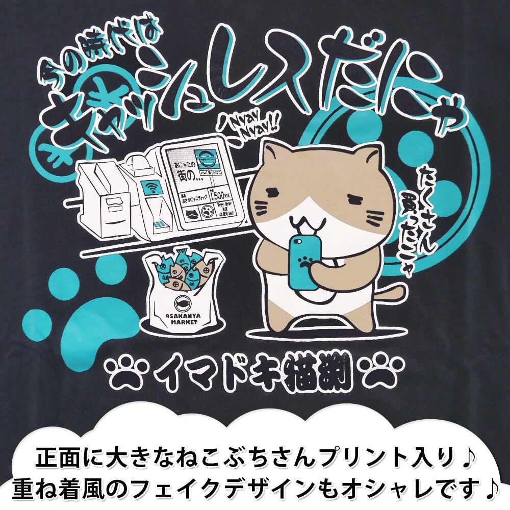 ねこぶちさん 長袖 プリント Tシャツ メンズ 重ね着風 フェイク 猫 グッズ 12235004 T-SHIRT