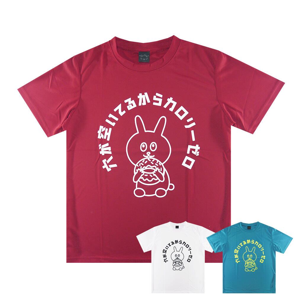 おもしろ Tシャツ メンズ 半袖 ドライ ウサギ カロリーゼロ セリフ グッズ 82248B T-SHIRT