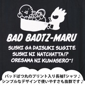 背中にバッドばつ丸のプリント入り長袖Tシャツ